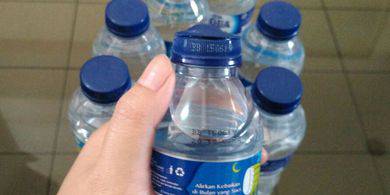 Kemasan tutup botol Aqua yang bagian atasnya terbuka.