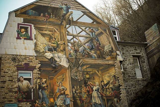 Pada gambar mural Fresque des Québécois ini terlihat beberapa rumah tua, tangga, dan dinding khas Kota Tua Quebec. Ini adalah sebuah spot yang sulit untuk ditinggalkan dengan cepat tanpa berfoto, kan?